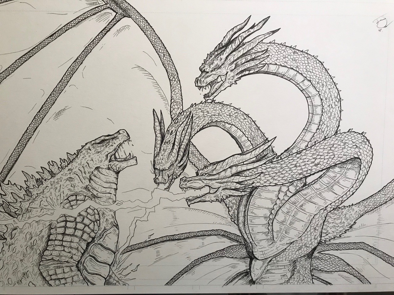 Drawing Godzilla & Ghidorah from MovieGodzilla: King of the Monsters - marki draws, colored pencil - Ghidorah Godzilla King Of The Monsters Coloring Pages